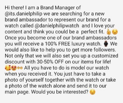 홍보대사가 되어주면 럭셔리 시계를 100% 공짜로 줄 것이며