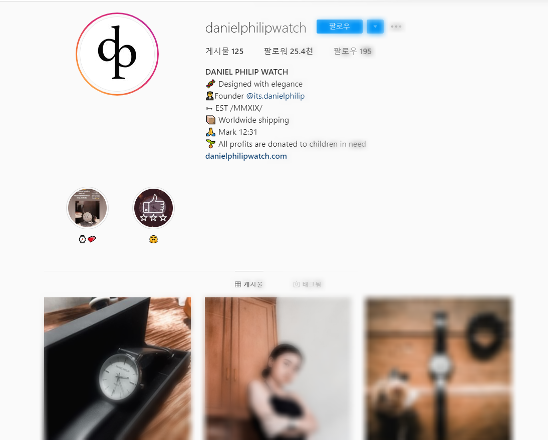 다니엘필립의 인스타 계정과 공식 홈페이지를 방문해보았어요!