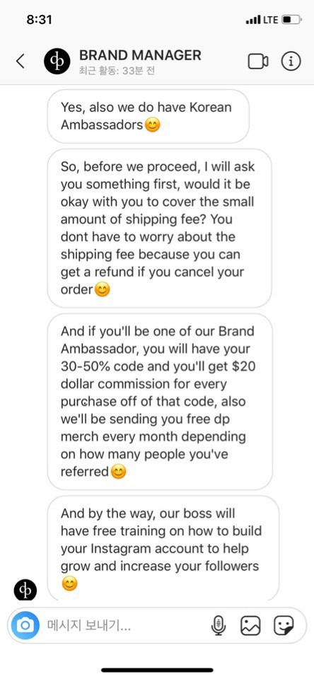 협찬 관련 인스타 DM이 왔다고 해서,