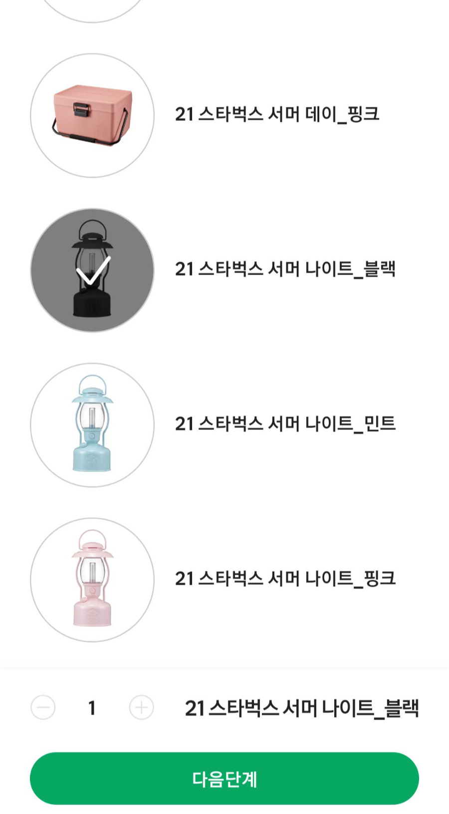 이번에는 스타벅스 서머 데이 쿨러 또는 싱잉 렌턴 중에