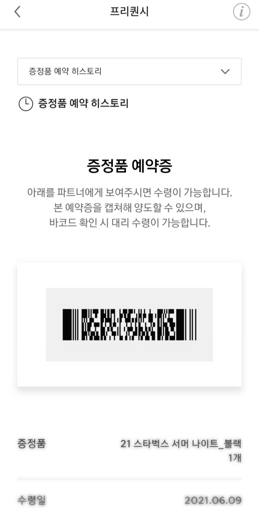 증정품 예약증 바코드를 확인할 수 있는데요!