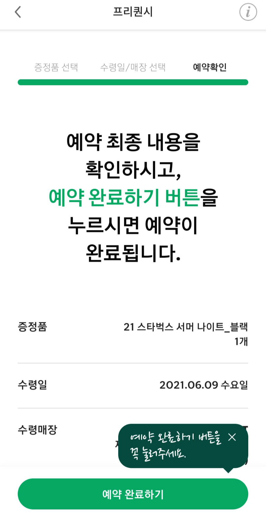예약 완료하기 버튼을 눌러주시면 정말 끝이랍니다~:)