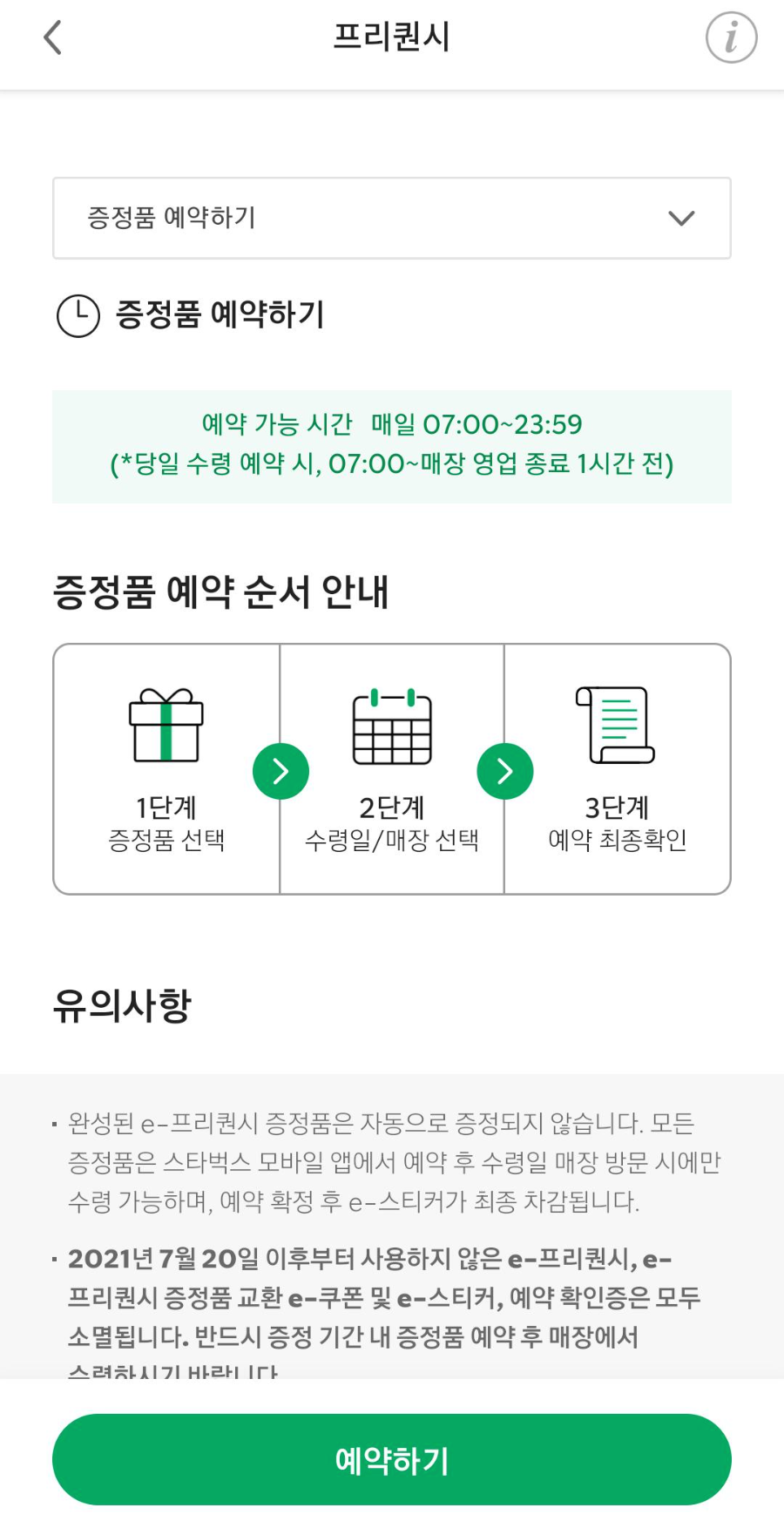 예약을 마치고 증정품 예약 히스토리에 들어가면