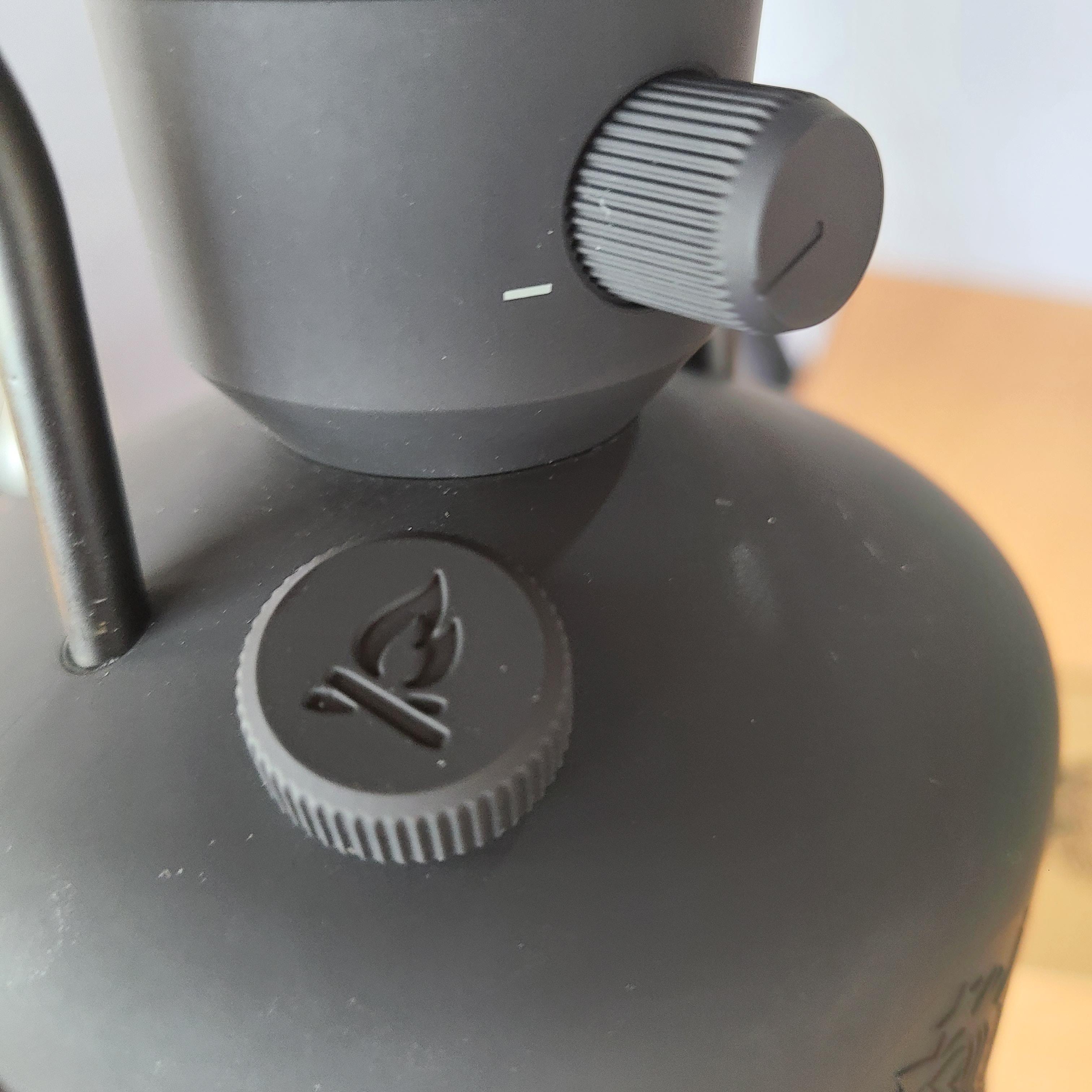 캠프파이어 모양이 그려진 버튼을 돌리면 불빛이
