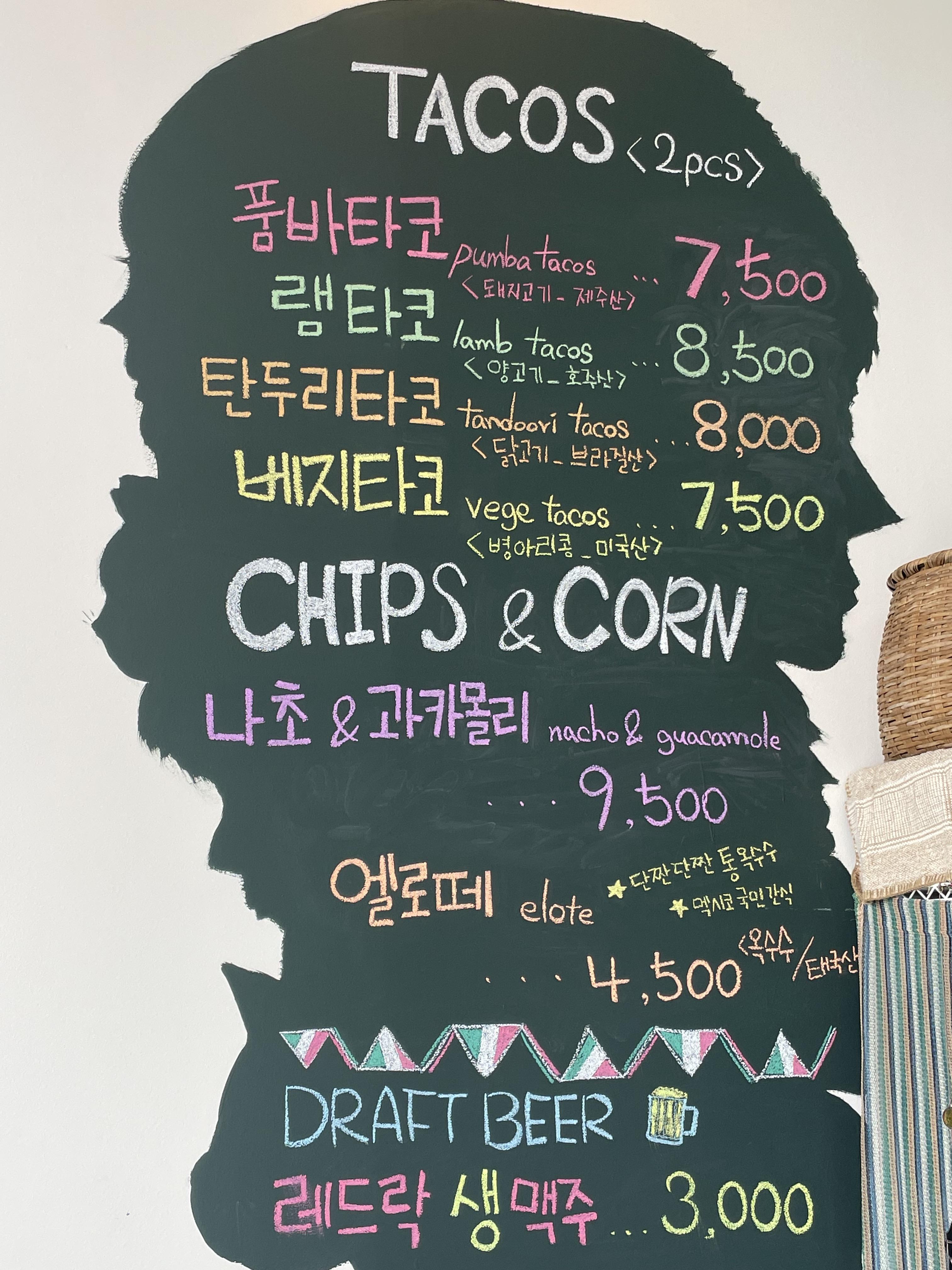 메뉴는 간결하게 타코와 나초,