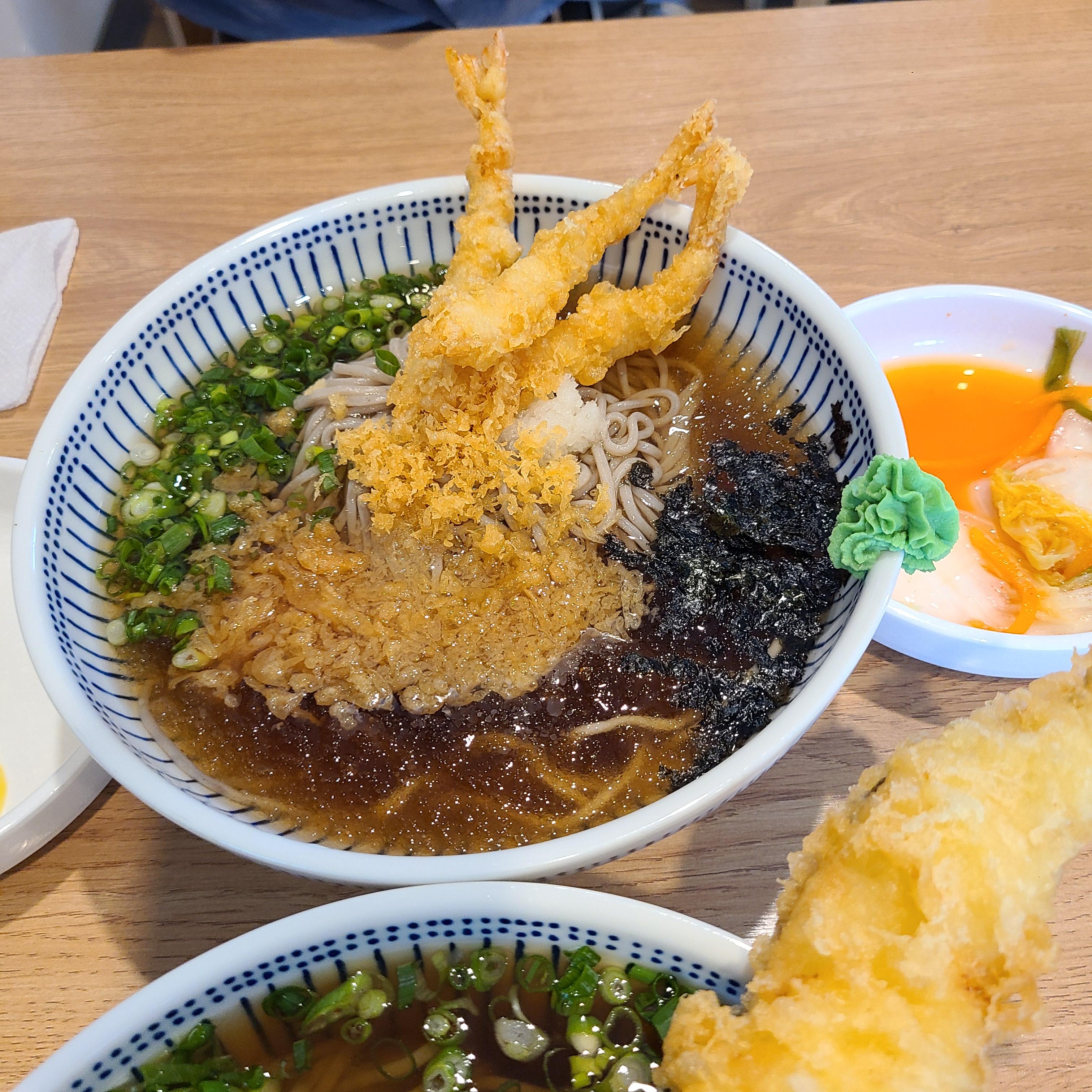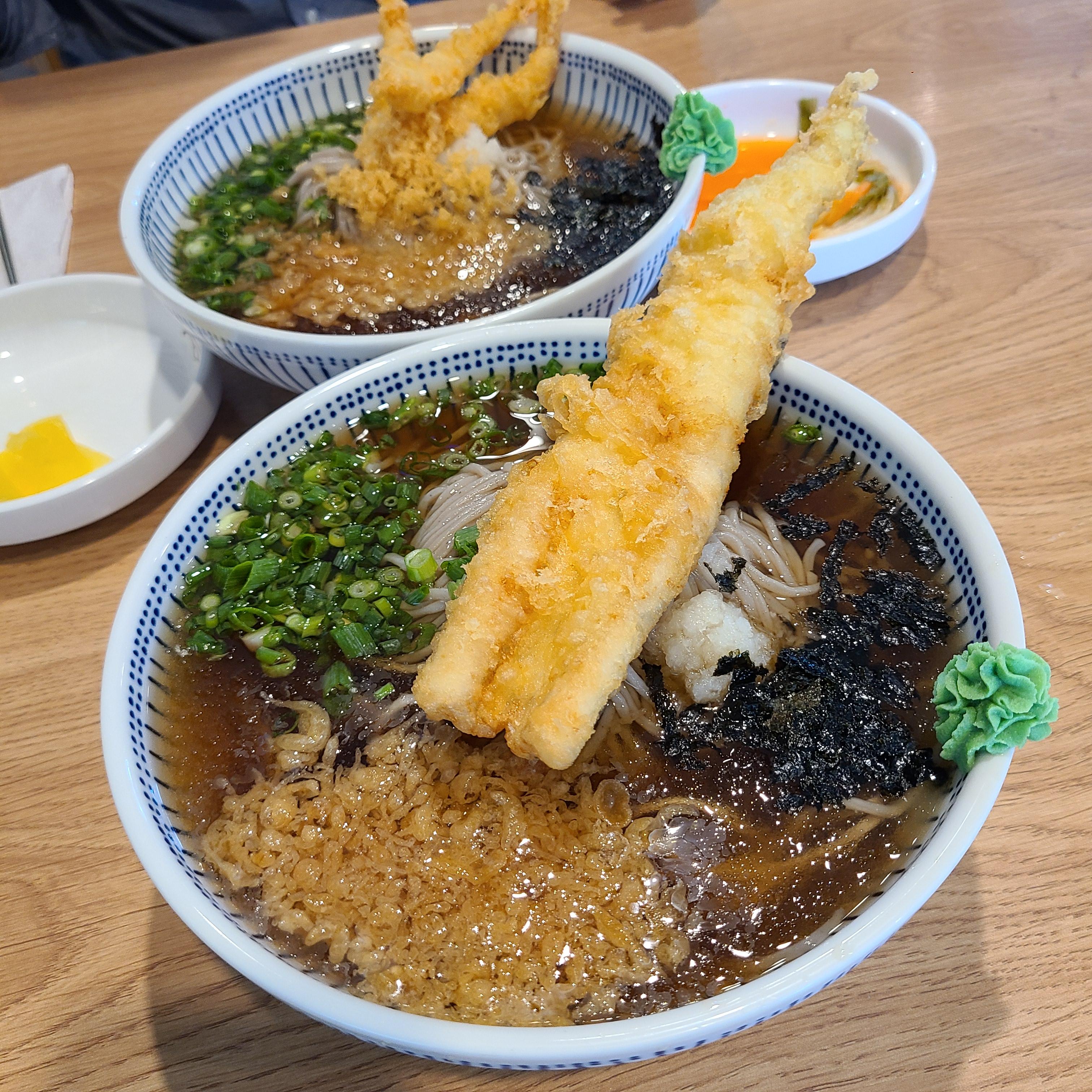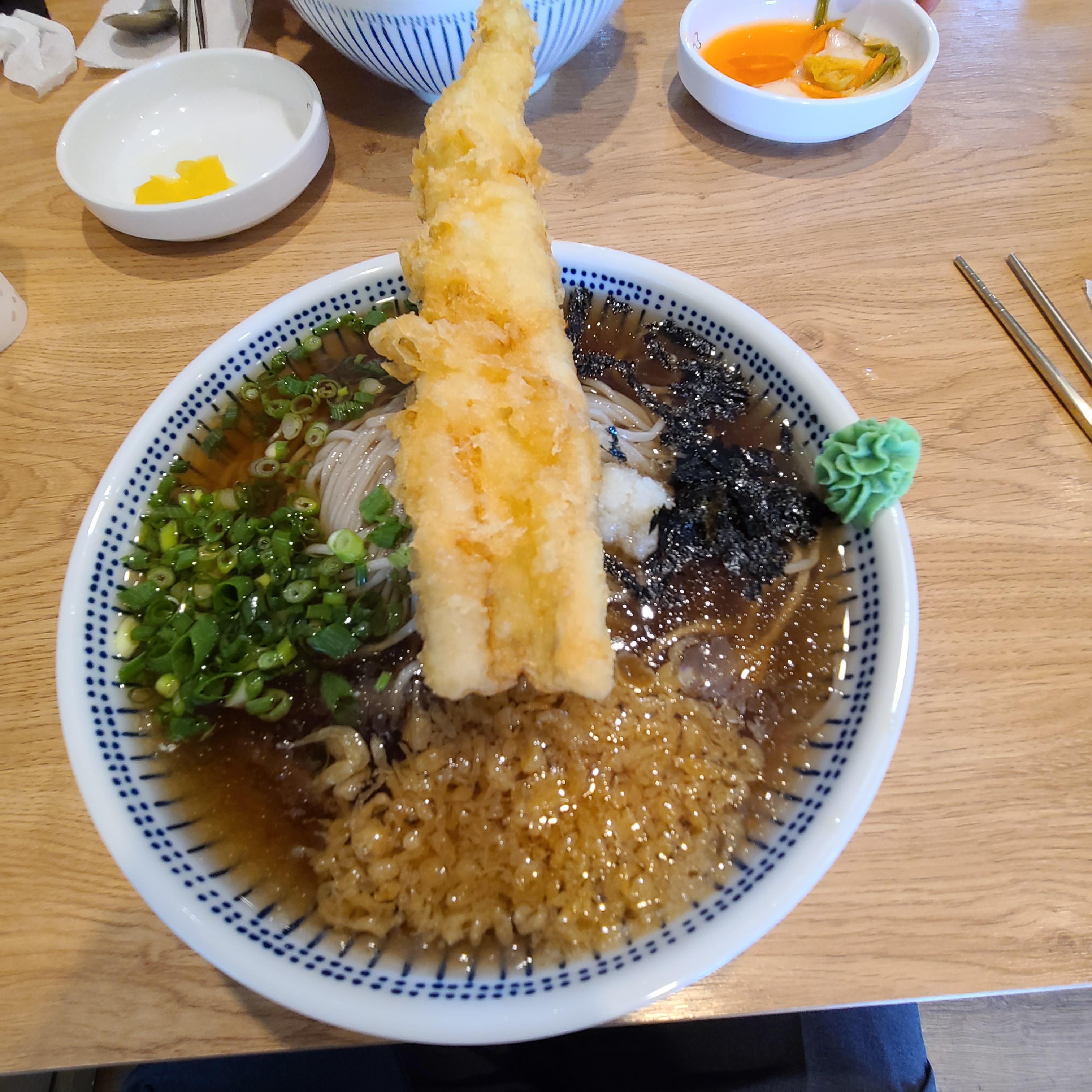 큼직한 장어 튀김과 새우 튀김이 올려진