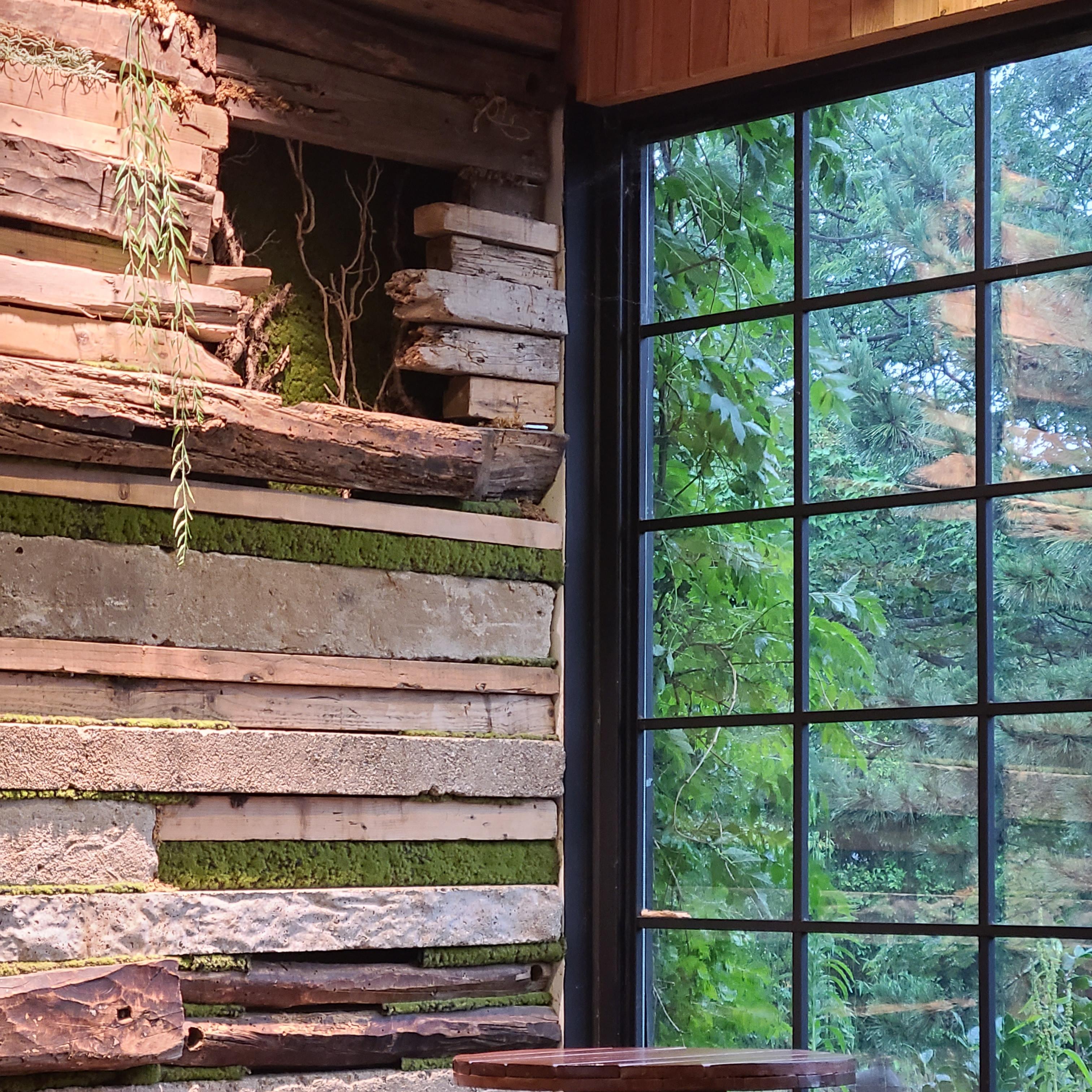비에 젖는 녹음을 보며 빗소리를 듣는 찰나