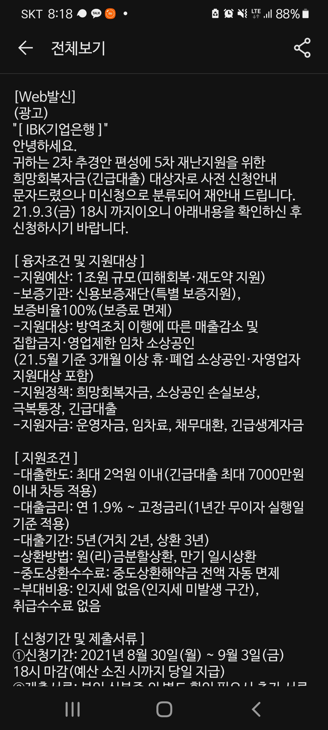 『스미싱문자 주의』신한은행 특별보증 긴급자금 대출