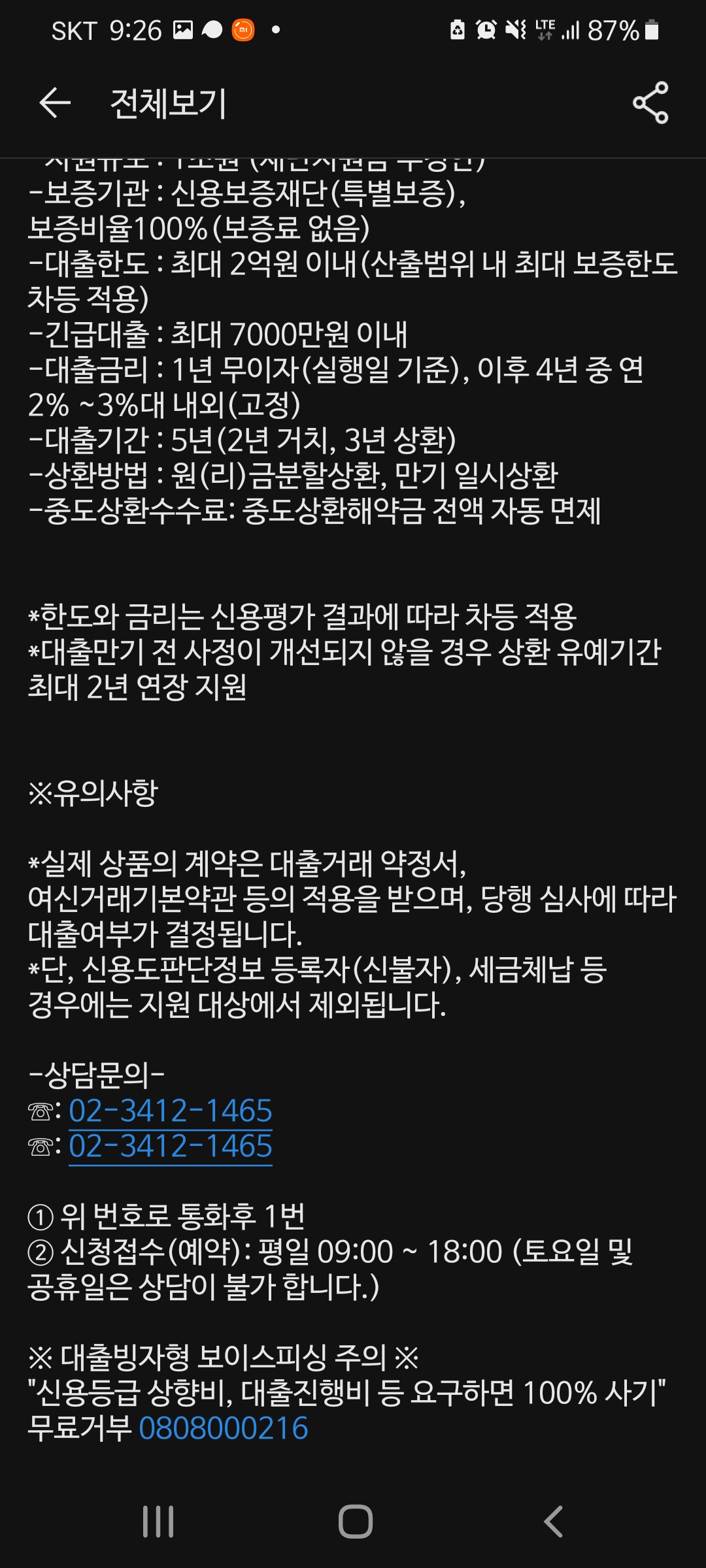 『대출빙자 보이스피싱』KB국민은행 희망회복자금 긴급대출 특례지원