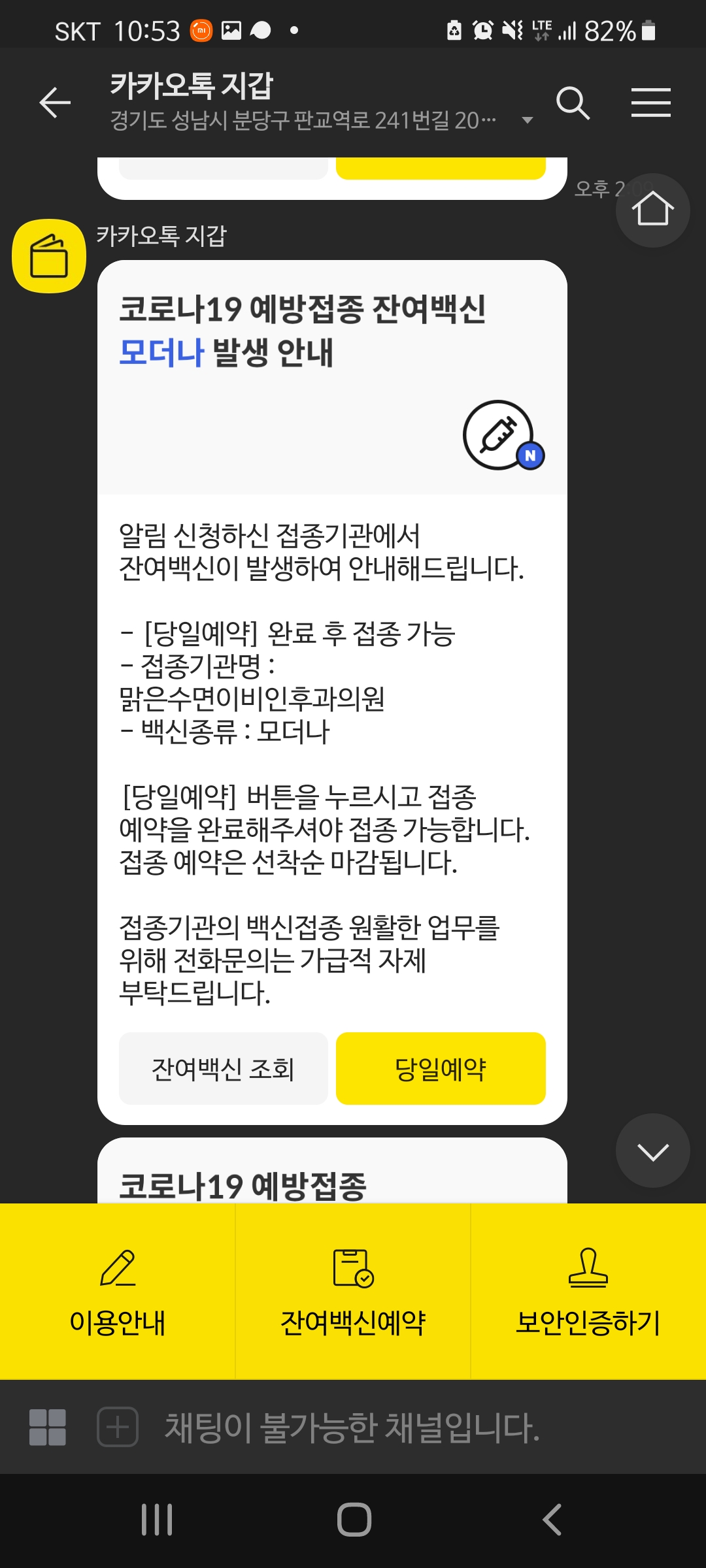 모더나 잔여백신 알림이 떠서 바로