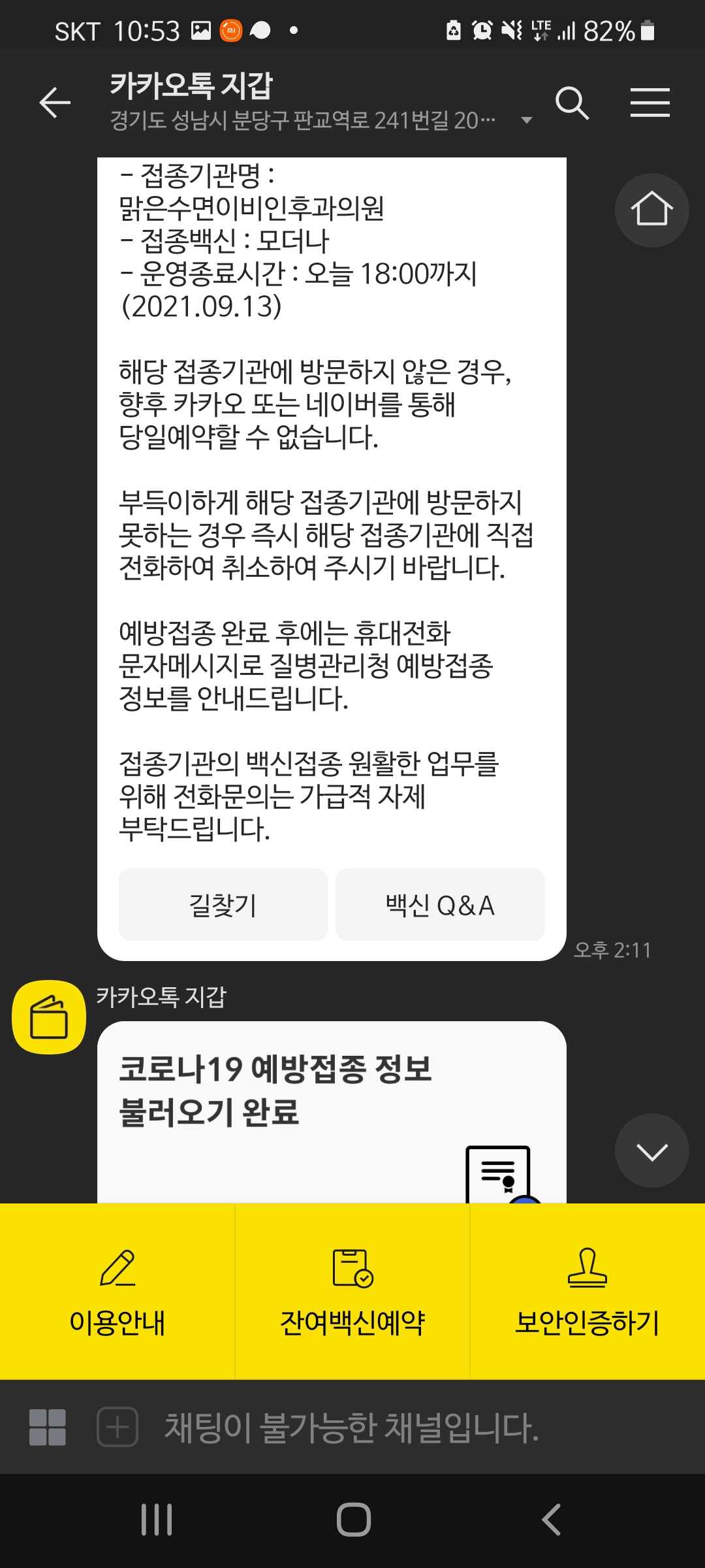 9.13(월) 이틀 전에 모더나 백신