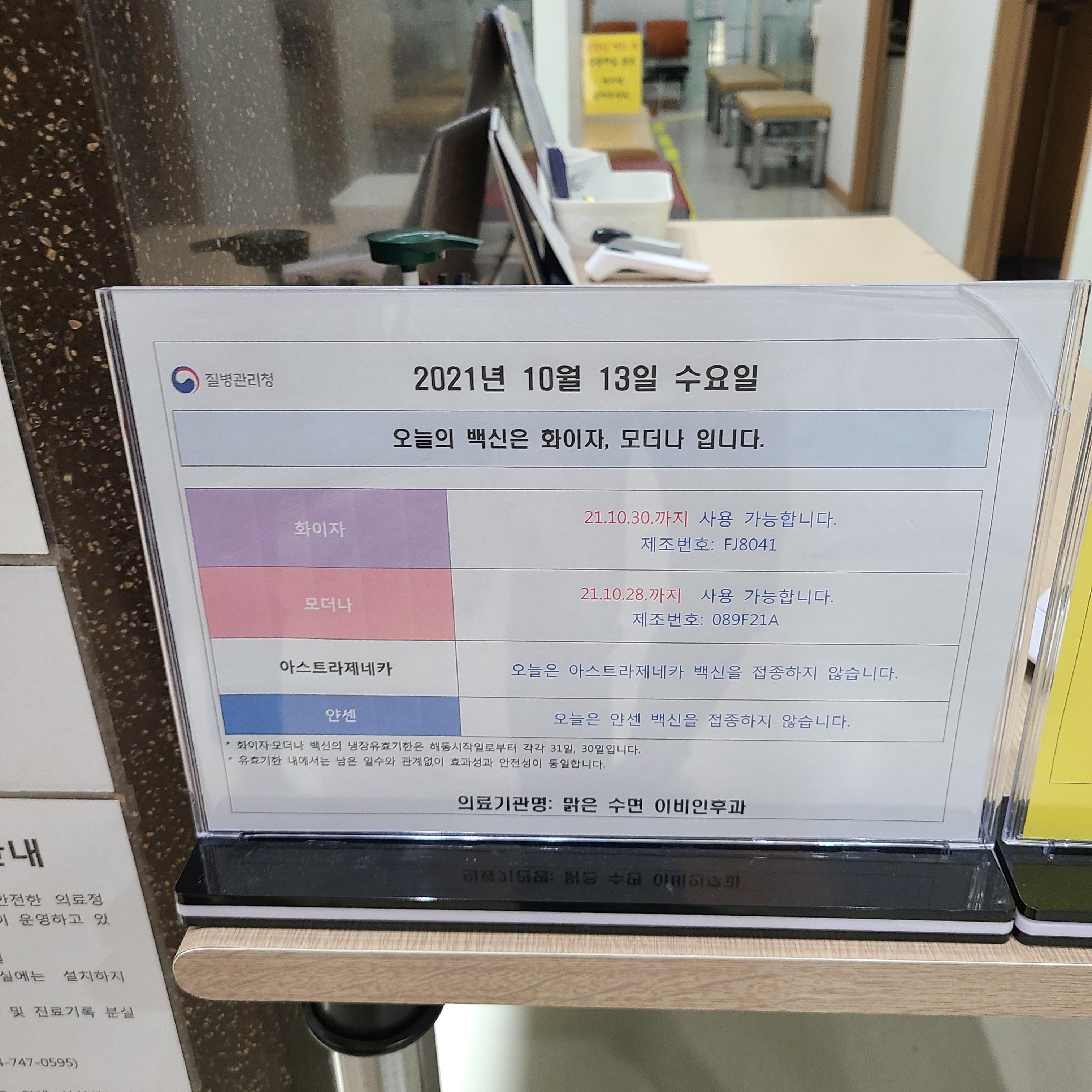 이틀 전 10.13(수)에 모더나 백신