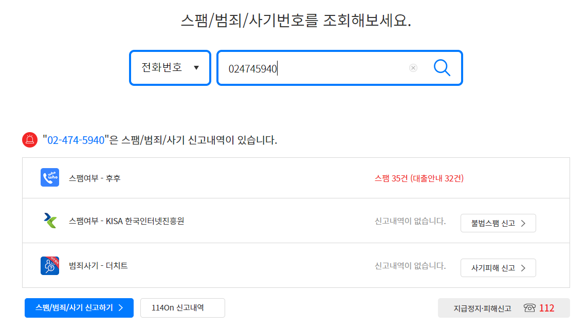 스팸번호 등록 및 신고가 가능하다고 합니다